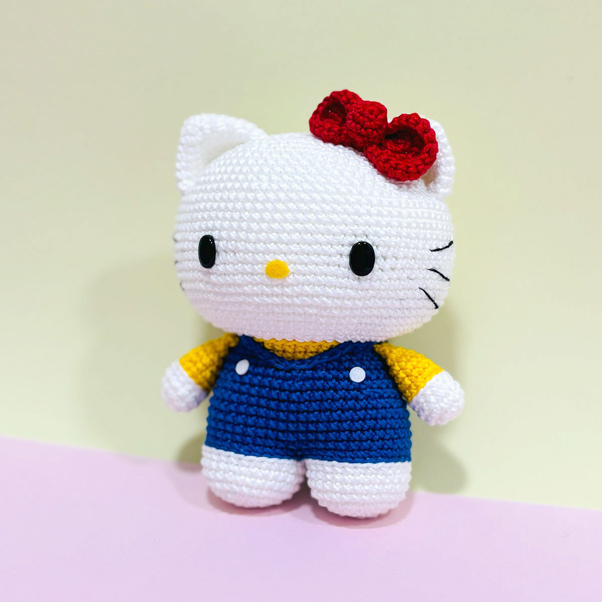 Clássica e Adorável: Peça meticulosamente tecida, replicando a Hello Kitty em sua versão mais amada, pronta para espalhar alegria e amizade.